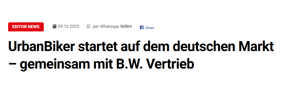 Por su parte, Velobiz, medio de referencia para profesionales del sector ciclista en Alemania, pone el foco en la consolidación de UrbanBiker y en la importancia de contar con una estructura sólida de distribución y servicio para responder a las expectativas del canal y del usuario final.